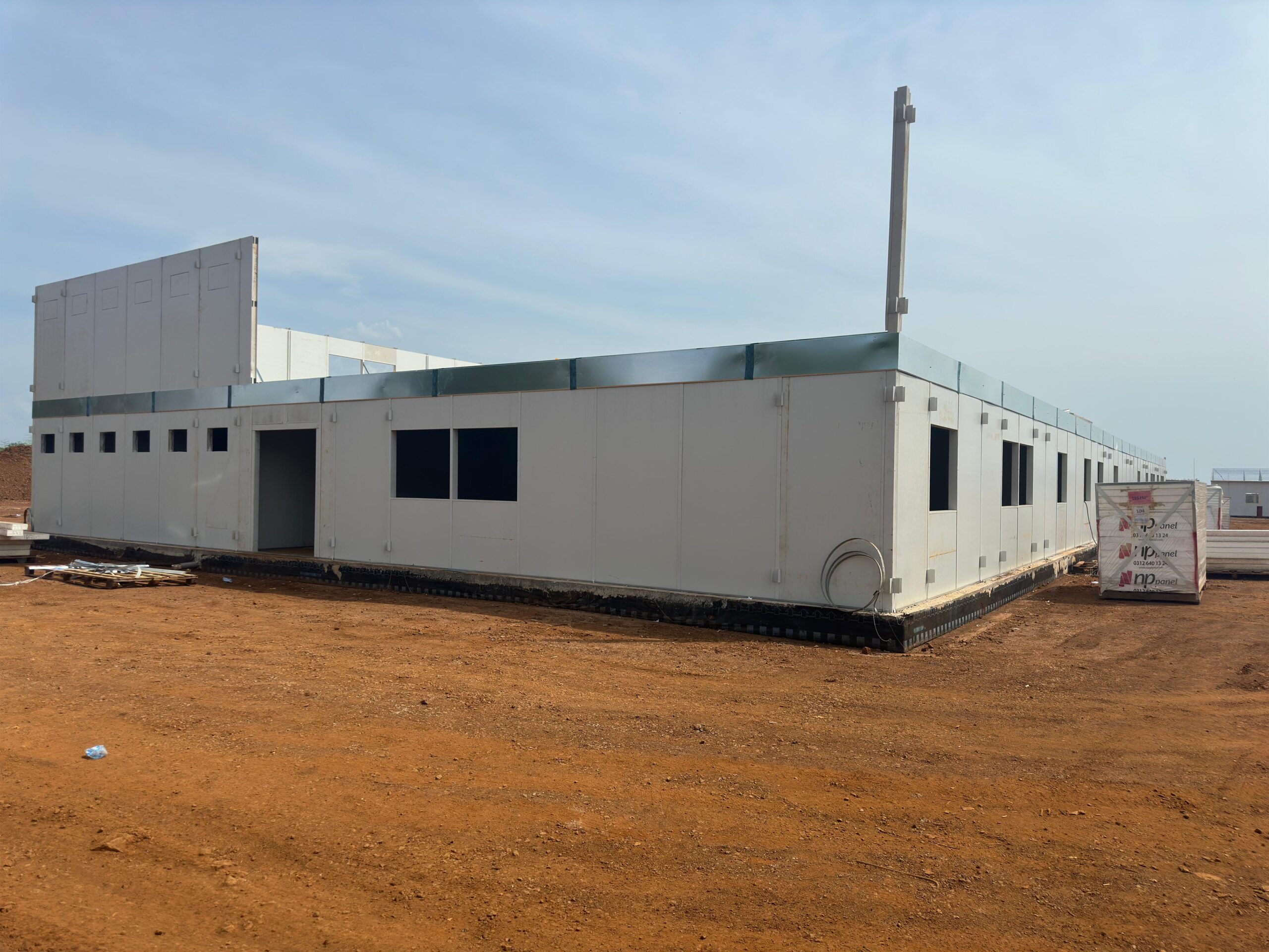 Les bâtiments préfabriqués de chantier établis dans le cadre duprojet de l’aéroport international de Guinée sont conçus pour assurer l’efficacité du travail des ingénieurs, des équipes de terrain et des unités de gestion, et contribuent également à l’avancement du processus de construction conformément au calendrier prévu. Les bâtiments préfabriqués, produits selon une approche modulaire, ont permis d ‘accélérer le processus du projet et d’accroître l’efficacité opérationnelle grâce à leur rapidité d’assemblage.