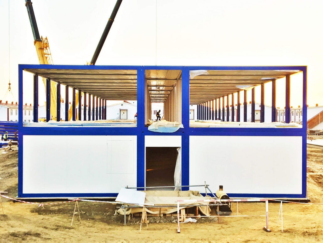 Pramo Prefabricated Building Technologies a attiré l’attention en créant des solutions d’ingénierie uniques pour la main-d’œuvre multinationale du projet, avec des conteneurs pour la mobilisation des travailleurs et des bâtiments pour les installations sociales, qui sont construits pour résister à des températures allant de +40 degrés Celsius en été à -40 degrés Celsius en hiver et à des conditions climatiques rigoureuses.